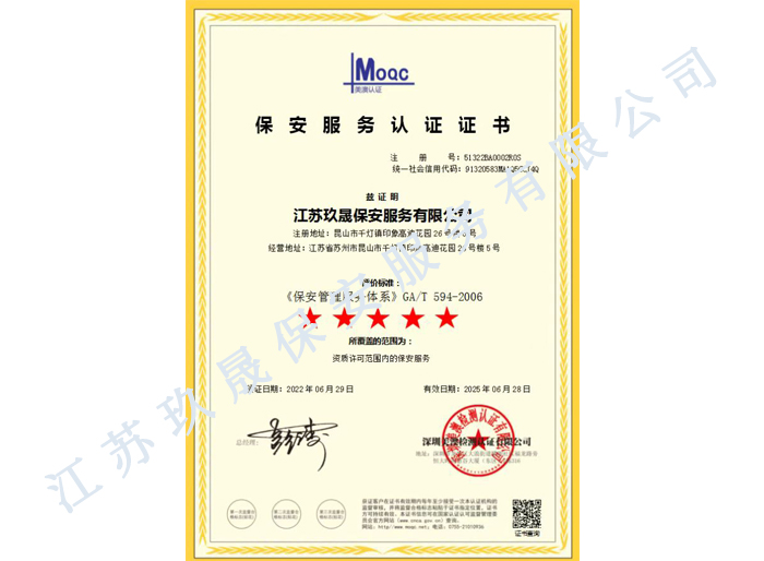 江蘇玖晟保安服務有限公司位于昆山市千燈鎮。注冊資金:2000萬,擁有省公安廳頒發的保安服務許可證的企業,是昆山市保安協會常務理事單位。